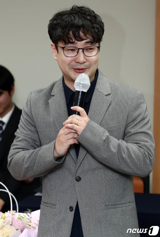 (서울=뉴스1) 박세연 기자 = 강원 보이스피싱 수사대 박승율 경사가 5일 오후 서울 종로구 경찰청에서 열린 제3회 서민경제 수호 영웅상 시상식에서 수상자 대표로 수상소감을 밝히고 있다. 2023.12.6/뉴스1psy5179@news1.krCopyright ⓒ 뉴스1. All rights reserved. 무단 전재 및 재배포, AI학습 이용 금지.