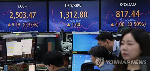 (서울=연합뉴스) 송은경 기자 = 코스피가 6일 소폭 상승 출발해 2,500선으로 올랐다.