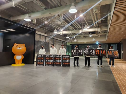 서승욱 노동조합 지회장은 “지난 5년간 조합활동을 하면서 지속적으로 조합원 게시판에 수많은 글을 남겼지만, 게시글에 대한 제한 요청을 받은 것은 처음이다. 그동안 지속적으로 카카오 아지트에서 다양한 형태의 홍보활동과 피켓시위를 진행했음에도 큰 마찰이 일어난 적이 없었다”고 말했다.