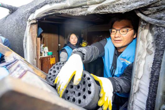 정종철 쿠팡풀필먼트서비스 법무부문 대표이사가 경기도 과천시 꿀벌마을에서 ‘사랑의 연탄 나눔’ 봉사를 하고 있는 모습. 쿠팡풀필먼트서비스 제공 |
