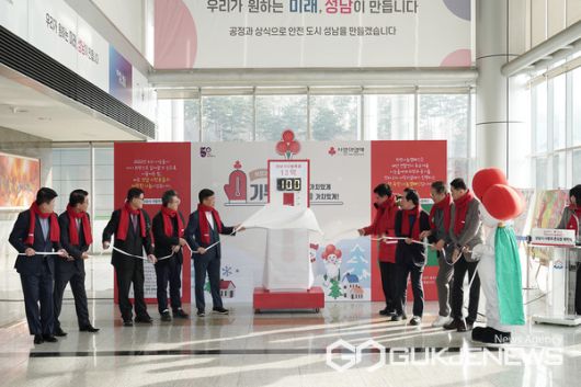 (성남=국제뉴스) 강정훈 기자 = 성남시는 어려운 이웃 돕기 위한 성금 모금 캠페인의 하나로 12월 5일 오전 10시 시청 1층 로비에서 '사랑의 온도탑 제막식'을 했다.