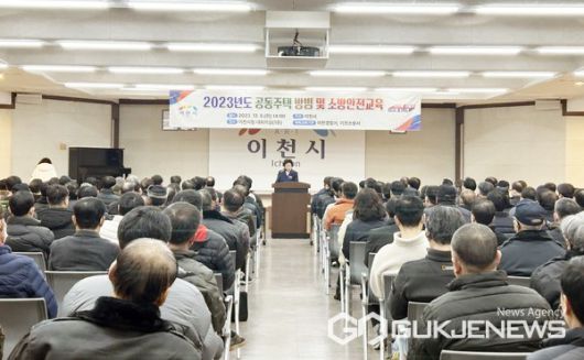 (이천=국제뉴스) 김덕기 기자 = 경기도 이천시는 지난 5일 시청1층 소통큰마루에서 관내 공동주택 경비원 및 소방안전관리자 180여 명을 대상으로 '2023년 공동주택 방범 및 소방안전교육'을 실시했다.
