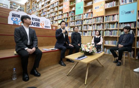 ▲오세훈 서울시장이 지난 4월 17일 서울 중구 서울도서관에서 서울런 우수 학생 초청 간담회를 하고 있다./사진=뉴시스 |