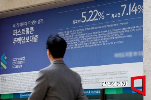 최근 국내 시장금리와 은행권 대출금리가 빠르게 상승하고 있는 23일 서울 한 시중은행 외벽에 대출 금리가 적힌 현수막이 걸려 있다. 사진=강진형 기자aymsdream@ |