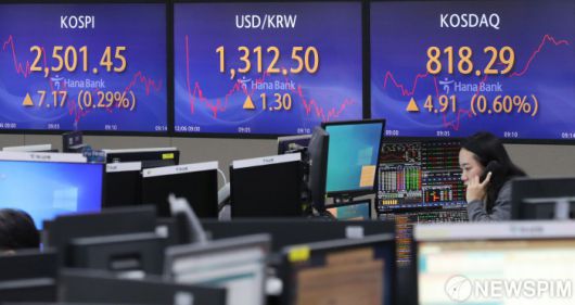 [서울=뉴스핌] 최지환 기자 = 6일 코스피가 전 거래일보다 9.29포인트(0.37%) 오른 2503.57에 개장햇다. 코스닥지수는 전 거래일보다 3.28포인트(0.40%) 상승한 816.66에 거래를 시작했다. 서울 외환시장에서 원·달러 환율은 전 거래일보다 2.8원 뛴 1314.0원에 거래를 시작했다. 이날 오전 서울 중구 하나은행 딜링룸에서 딜러들이 업무를 보고 있다. 2023.12.06 choipix16@newspim.com