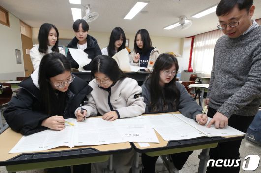 2024학년도 대학수학능력시험(수능)을 치른 고3 학생들이 가채점을 하는 모습. (사진은 기사 내용과 무관함) / 뉴스1 ⓒ News1 공정식 기자 |