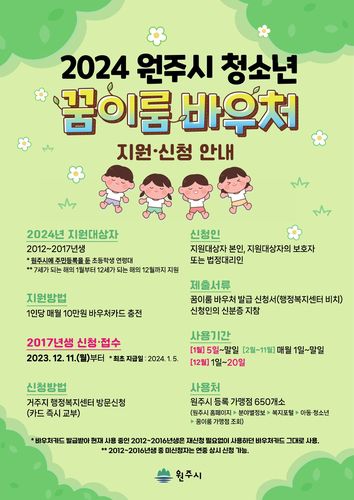 원주시 청소년 꿈이룸 바우처 신청 안내 |