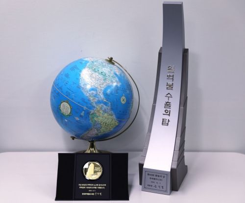 롯데웰푸드 1억불 수출탑과 제60회 무역의날 기념주화[사진제공=롯데웰푸드] |