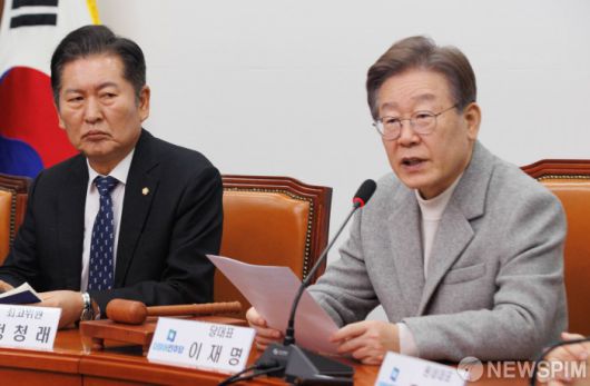 [서울=뉴스핌] 윤창빈 기자 = 이재명 더불어민주당 대표가 6일 오전 서울 여의도 국회에서 열린 최고위원회의에서 모두발언을 하고 있다. 2023.12.06 pangbin@newspim.com