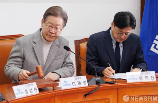 [서울=뉴스핌] 윤창빈 기자 = 이재명 더불어민주당 대표가 6일 오전 서울 여의도 국회에서 열린 최고위원회의에서 의사봉을 두드리고 있다. 2023.12.06 pangbin@newspim.com 저작권자(c) 글로벌리더의 지름길 종합뉴스통신사 뉴스핌(Newspim), 무단 전재-재배포 금지