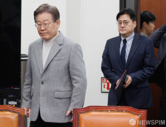 [서울=뉴스핌] 윤창빈 기자 = 이재명 더불어민주당 대표, 홍익표 원내대표가 6일 오전 서울 여의도 국회에서 열린 최고위원회의에 참석하고 있다. 2023.12.06 pangbin@newspim.com 저작권자(c) 글로벌리더의 지름길 종합뉴스통신사 뉴스핌(Newspim), 무단 전재-재배포 금지