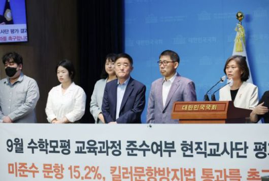 강민정·강득구 더불어민주당 의원과 시민단체 사교육걱정없는세상은 6일 오전 국회에서 기자회견을 열고 올해 수능 수학영역 문항의 고교 교육과정 준수 여부를 자체 분석한 결과를 발표했다. 이들은 이번 수능 수학영역에 출제된 46개 문항 중 6개 문항(13.04%)이 고교 교육과정의 범위와 수준을 벗어나 출제됐다고 주장했다. 이번 분석에는 총 14명의 현직 교사와 2명의 교육과정 전문가가 참여했으며 지난달 17일부터 26일까지 10일간 진행됐다.
