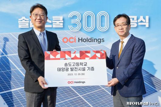 [파이낸셜뉴스] OCI홀딩스는 지난 2011년부터 시작한 태양광 발전 기반 사회공헌활동인 솔라스쿨 프로젝트가 인천 송도고동학교를 마지막으로 300번째 대장정을 마무리했다고 6일 밝혔다.