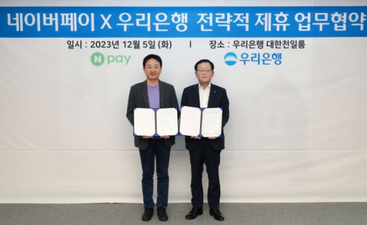 우리은행이 네이버페이와 비금융서비스를 융합한 데이터 연계 사업을 추진하기 위한 전략적 업무 협약을 체결했다고 6일 밝혔다.