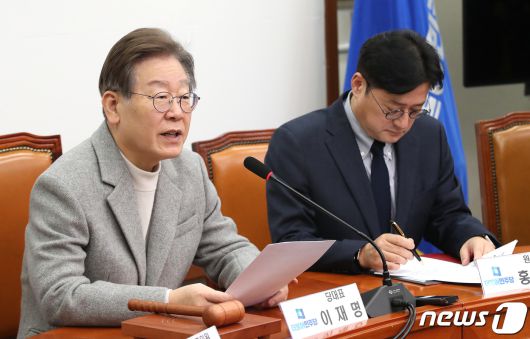 (서울=뉴스1) 임세영 기자 = 이재명 더불어민주당 대표가 6일 오전 서울 여의도 국회에서 열린 최고위원회의에서 발언을 하고 있다. 2023.12.6/뉴스1