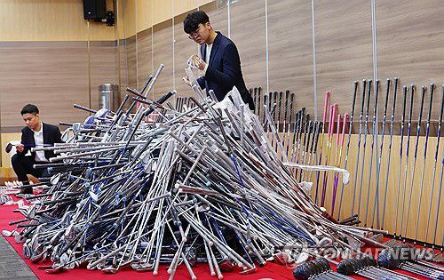 (인천=연합뉴스) 홍현기 기자 = 고급 유명 브랜드를 도용한 중국산 '짝퉁' 골프채를 대거 밀반입한 뒤 정품으로 속여 판매한 30대 밀수업자가 세관에 붙잡혔다.