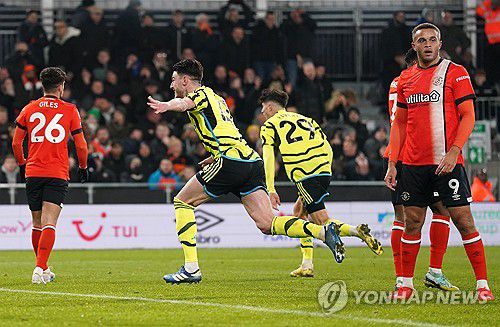 아스널은 6일(한국시간) 영국 루턴 케니워스 로드에서 열린 루턴 타운과의 2023/24시즌 프리미어리그 15라운드 맞대결에서 후반 추가시간에 터진 데클란 라이스에 결승골에 힘입어 4-3으로 이겼다.
