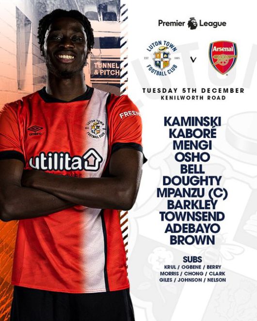 원정팀 아스널은 4-3-3으로 나섰다. 다비드 라야가 골문을 지키고, 야쿠프 키비오르, 가브리에우 마갈량이스, 윌리엄 살리바, 벤 화이트가 백4를 구성했다. 중원은 카이 하베르츠, 데클란 라이스, 마르틴 외데고르가 맡았다. 최전방에서 가브리엘 마르티넬리, 가브리엘 제수스, 부카요 사카가 루턴 타운 골문을 노렸다.