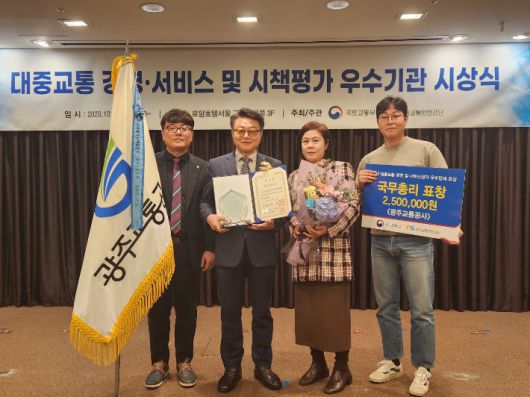 광주교통공사가 국토교통부의 '2022 대중교통 경영 및 서비스 평가' 우수기관 선정에 따른 국무총리상을 수상했다.
