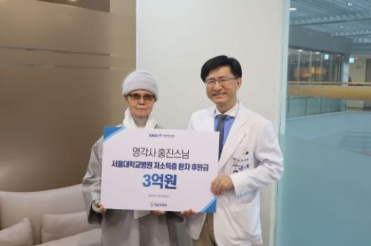 서울대병원은 지난달 29일 영각사 주지인 홍진스님으로부터 저소득층 환자 후원금 3억원을 전달받았다고 6일 밝혔다.