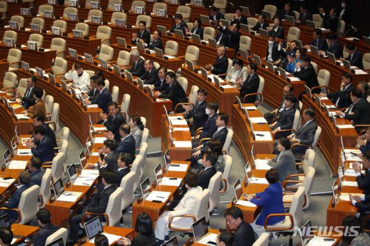 [서울=뉴시스] 고범준 기자 = 지난 4월27일 오후 서울 여의도 국회 본회의장에서 열린 제405회국회(임시회) 제5차 본회의에서 화천대유 ‘50억 클럽’ 뇌물 의혹 사건의 진상규명을 위한 특별검사의 임명 등에 관한 법률안에 대한 신속처리안건 지정 동의의 건, 대통령 배우자 김건희의 도이치모터스 주가조작 의혹 진상규명을 위한 특별검사 임명 등에 관한 법률안에 대한 신속처리안건 지정 동의의 건이 통과되자 의원들이 박수치고 있다. 이른바 '쌍특검' 법안이 신속처리안건(패스트트랙)으로 지정, 대장동 50억 클럽 특검 도입 법안과 관련 총 투표수 183표 중 183표 전원 찬성으로 가결, 김건희 여사 의혹 관련 특검 법안은 총 투표수 183표 중 찬성 182표, 반대 1표로 통과됐다. 2023.04.27. bjko@newsis.com |