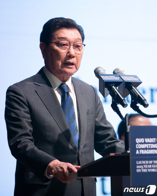 (서울=뉴스1) 이승배 기자 = 정덕구 니어재단 이사장이 6일 오전 서울 중구 대한상공회의소에서 ‘세계, 어디로 가고 있는가·파편화된 세계 속 질서를 위한 경쟁’을 주제로 열린 글로벌 컨퍼런스에 참석해 개회사하고 있다. 이번 행사는 니어재단의 2023 글로벌 서베이 보고서 발표와 연계해 국내외 국제관계 석학 및 전문가들이 모여 글로벌 어젠다에 대해 토의하고 의견을 나누기 위해 마련됐다. 2023.12.6/뉴스1