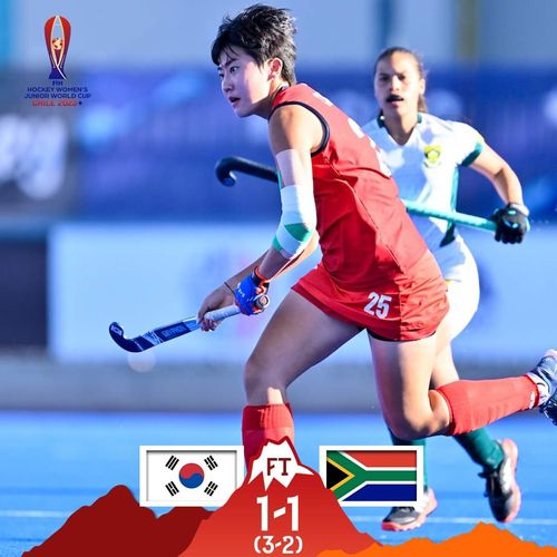 김성은(kt) 감독이 지휘하는 한국은 6일(한국시간) 칠레 산티아고에서 열린 제10회 FIH 주니어 여자월드컵 대회 6일째 남아프리카공화국과 9∼16위 순위전에서 1-1로 비긴 뒤 페널티 슛아웃에서 3-2로 이겼다.
