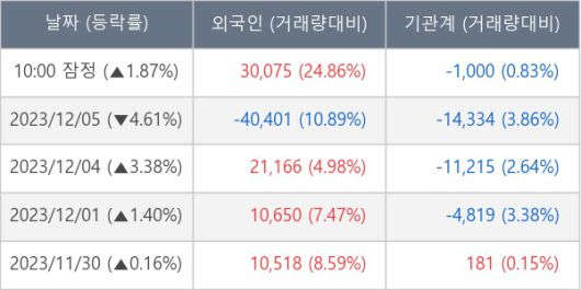 ※ 사모펀드 등 일부 기관의 순매매량은 표시되지 않음
