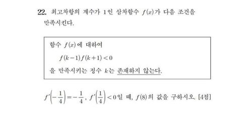 또 22번은 도함수를 활용해 함수의 그래프 개형을 추측해야 하는데, 이 과정도 지나치게 복잡해 교육과정을 벗어났다고 지적했다.