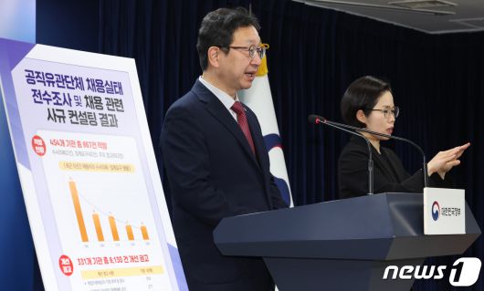 (서울=뉴스1) 김명섭 기자 = 정승윤 국민권익위원회 부위원장 겸 사무처장이 6일 오전 서울 종로구 세종대로 정부서울청사에서 2023년 공직유관단체 채용실태 전수조사 및 사규컨설팅 결과 발표를 하고 있다. 2023.12.6/뉴스1