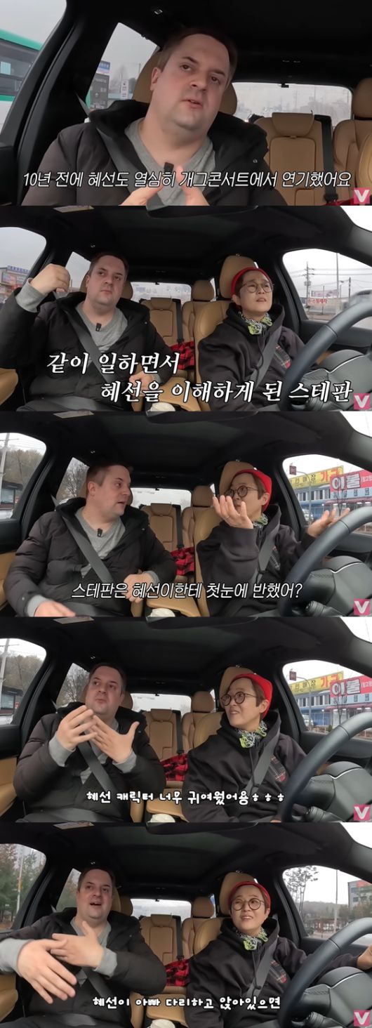 이어 그는 "스테판은 혜선이 첫눈에 반했어?"라고 질문, 스테판은 "혜선 캐릭터 너무 귀여웠다"고 답해 애정을 한껏 드러냈다. 아빠 다리를 하고 앉아 있는 모습이 너무 귀여웠다고.