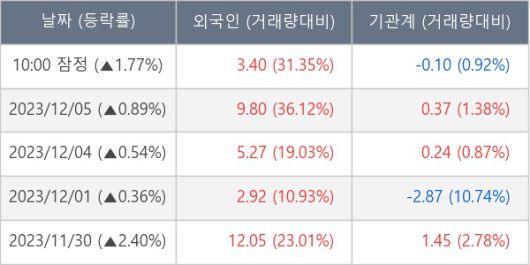 ※ 사모펀드 등 일부 기관의 순매매량은 표시되지 않음