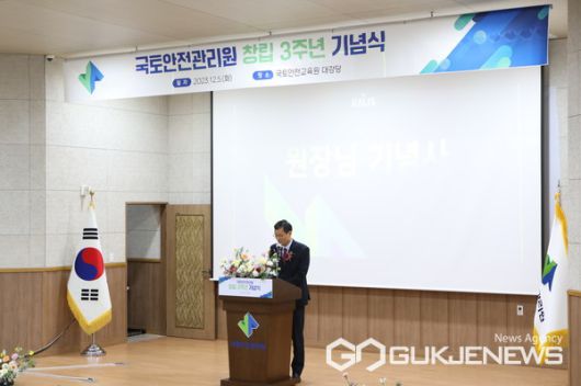 (사진제공=국토안전관리원)김일환 원장이 창립 3주년을 맞아 기념사를 하고 있다 |
