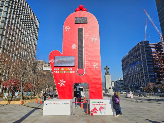 서울 광화문광장에 설치된 사회복지공동모금회의 '사랑의 온도탑'. / 사진=박정엽 기자 |