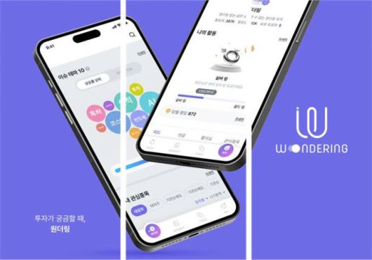 원더링은 MZ세대가 자유롭게 소통하며 스스로 성장할 수 있도록 도와주는 투자정보 플랫폼이다. 핵심 서비스는 주식 관련 쉽고 유용한 투자정보와 커뮤니티로, 특히 MZ 세대가 선호하는 간결한 디자인과 언어 등 UX·UI 구현에 공을 들였다는 설명이다.