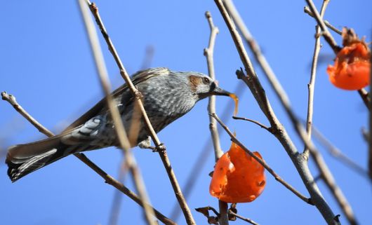 (거창=국제뉴스) 이종필 기자 = 절기상 대설을 이틀 앞둔 5일 거창군 신원면 청연마을에서 직박구리 한 마리가 찬 서리를 몇 번이고 맞아 잘 익은 홍시를 먹고 있다.