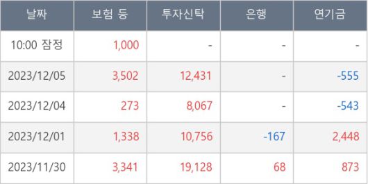 [표] 주요 기관별 순매매량 (단위 주)