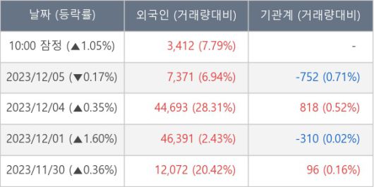 [표] 외국인ㆍ기관 순매매량 (단위 주)