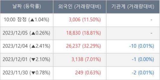 [표] 외국인ㆍ기관 순매매량 (단위 주)