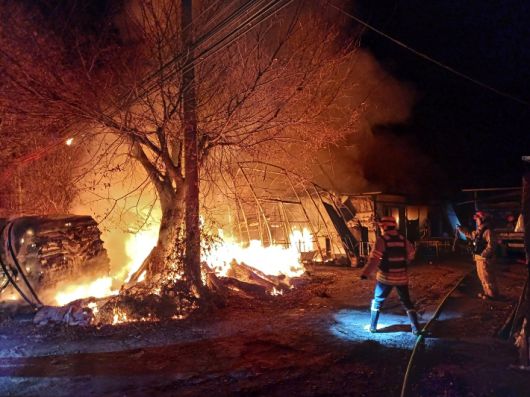 당시 비닐하우스 창고에 있던 외국인 노동자 2명은 긴급 대피해 인명 피해는 없었다.