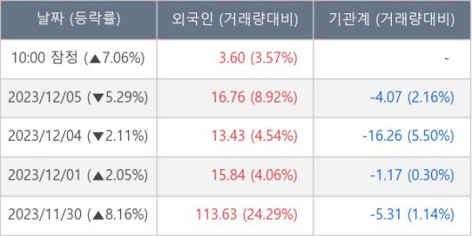 [표] 외국인ㆍ기관 순매매량 (단위 만주)