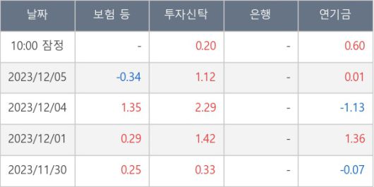 [표] 주요 기관별 순매매량 (단위 만주)