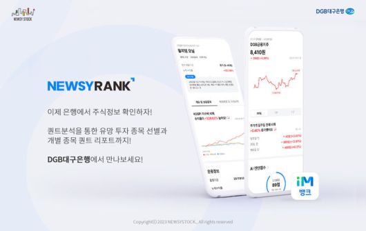 이번 제휴를 통해 DGB대구은행 마이데이터 서비스 이용자들은 뉴지랭크의 퀀트분석 기능을 활용해 전문적이고 심층적인 주식 투자 정보에 접근할 수 있게 된다.