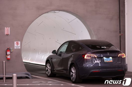 3일(현지시간) 미국 네바다주 라스베이거스 컨벤션센터에서 일론 머스크가 설립한 보링 컴퍼니의 '베가스 루프'를 통해 테슬라 차량이 운행되는 모습. 2022.1.4/뉴스1 ⓒ News1 조태형 기자 |