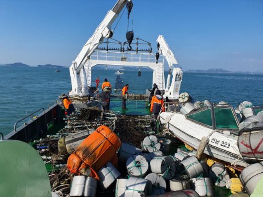전남 여수시가 여수·고흥·완도 경계해역에 불법 김양식시설물에 대한 집중적인 지도·단속과 강제 철거를 실시하고 있다. /여수시 |