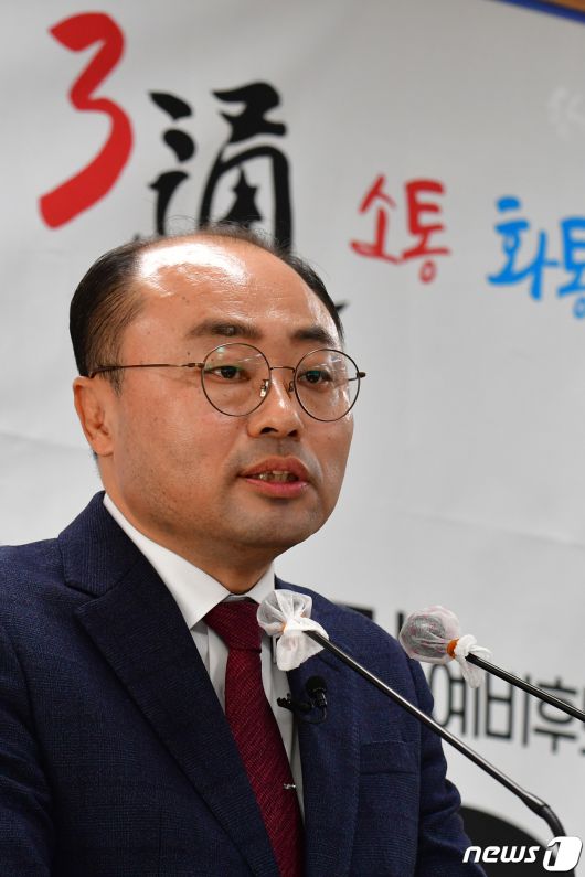 (포항=뉴스1) 최창호 기자 = 최병욱 대통령소속 경제사회노동위원회 자문위원이 6일 오전 경북 포항시청 브리핑룸에서 제22대 국회의원 선거 포항남·울릉 지역구 출마 기자회견을 하고 있다. 최 예비후보는 국토교통부 최초 3선 노조위원장을 지냈다.2023.12.6/뉴스1