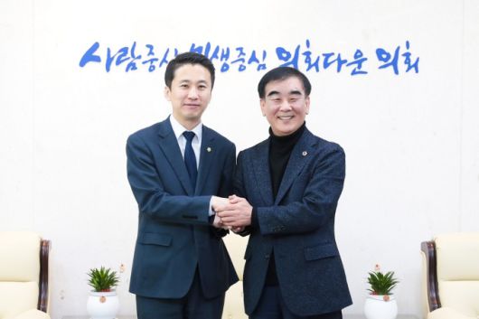 [안산=뉴스핌] 박승봉 기자 = 경기 안산시의회 송바우나 의장이 지난 5일 경기도의회 염종현 의장을 예방했다.