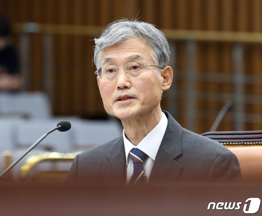 (서울=뉴스1) 송원영 기자 = 조희대 대법원장 후보자가 6일 서울 여의도 국회에서 열린 인사청문회에서 의원들의 질의에 답변하고 있다. 2023.12.6/뉴스1