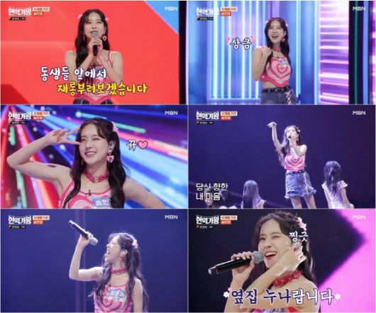송민경은 5일 방송한 MBN ‘현역가왕’에 출연해 ‘옆집누나’로 경연 무대를 펼쳤다.