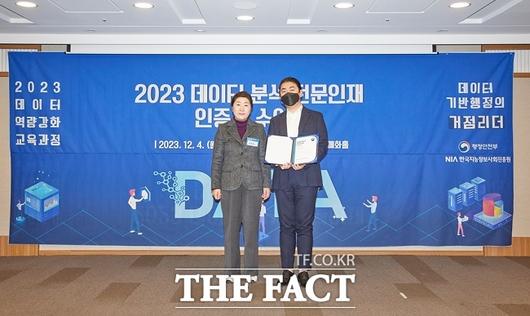 [더팩트|의정부=김원태 기자] 경기 의정부시는 행정안전부가 개최한 '데이터 분석 핵심 전문 인재 인증서 수여식'에서 데이터분석 전문가 인증서와 데이터 분석 인재 양성 선도기관으로 인증패를 받았다.